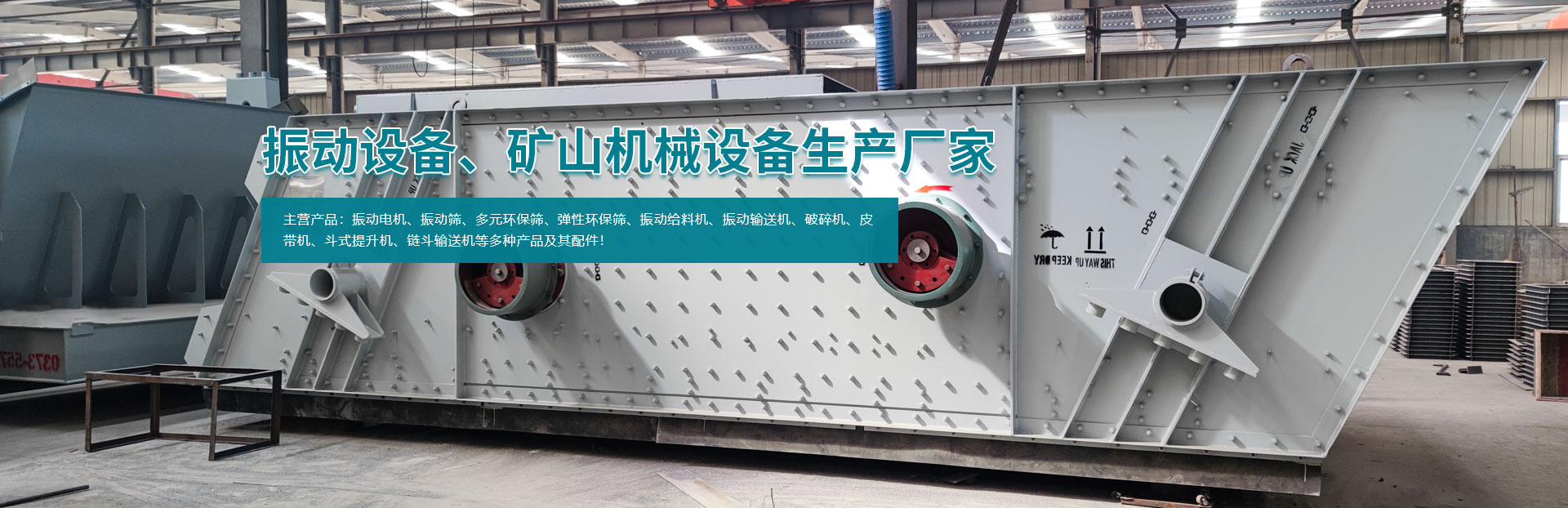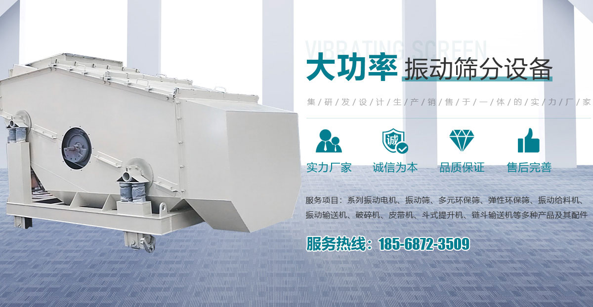 - 主要產(chǎn)品有系列振動電機(jī)、振動篩、多元環(huán)保篩、彈性環(huán)保篩、振動給料機(jī)、振動輸送機(jī)、破碎機(jī)、皮帶機(jī)、斗式提升機(jī)、鏈斗輸送機(jī)等多種產(chǎn)品